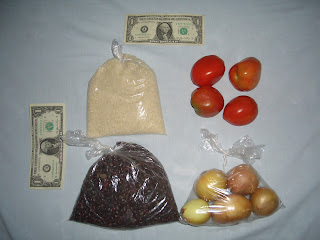 Starring at how little a pound of rice and beans feels I cannot even begin to imagine surviving on 1 dollar of food a day. It appears to be enough for the side of an average lunch for two - not the only thing to eat for the entire day.
